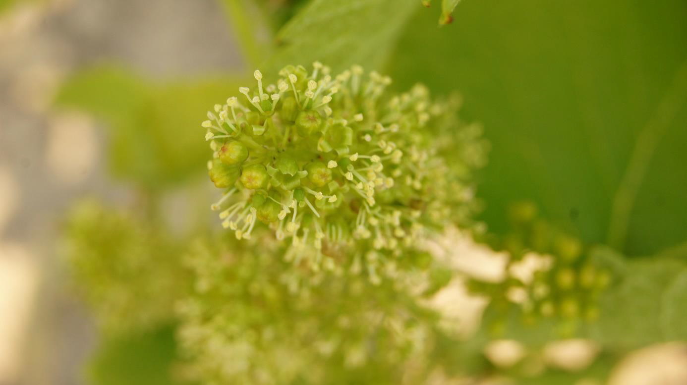 Zawsze czekam przyczajona na zawiązki gron i wypatruję procesu kwitnienia, u winorośli zdecydowanie mniej spektakularnego, niż się spodziewacie. Białe, malutkie pręciki w kwiatach zbierają wspólne siły i zrzucają kryjący je kołpaczek. Przez pewien czas wyglądają jak wybitnie puchate gąsienice, a po opadnięciu zaczyna się kształtowanie jagód.