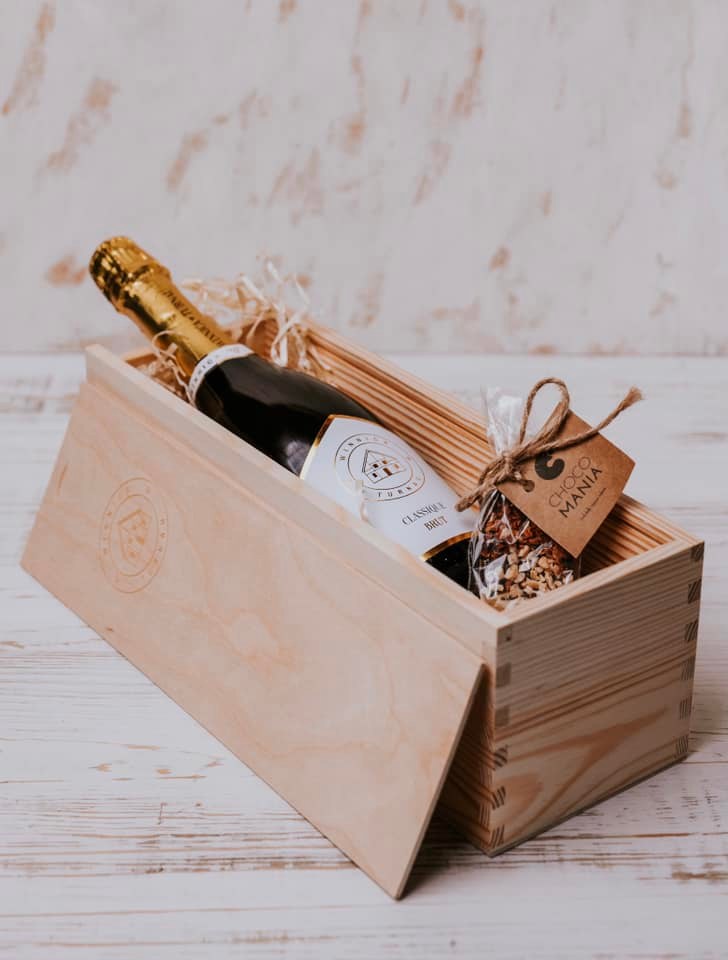 -Zestaw Classique Brut Plus w drewnianej ozdobnej skrzynce wraz z tabliczką belgijskiej czekolady: bit.ly/Zestaw-Classique-Brut-Plus