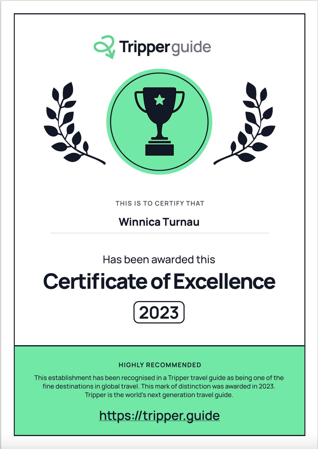 Certificate of Excellence od Tripper Guide dla naszej winnicy!