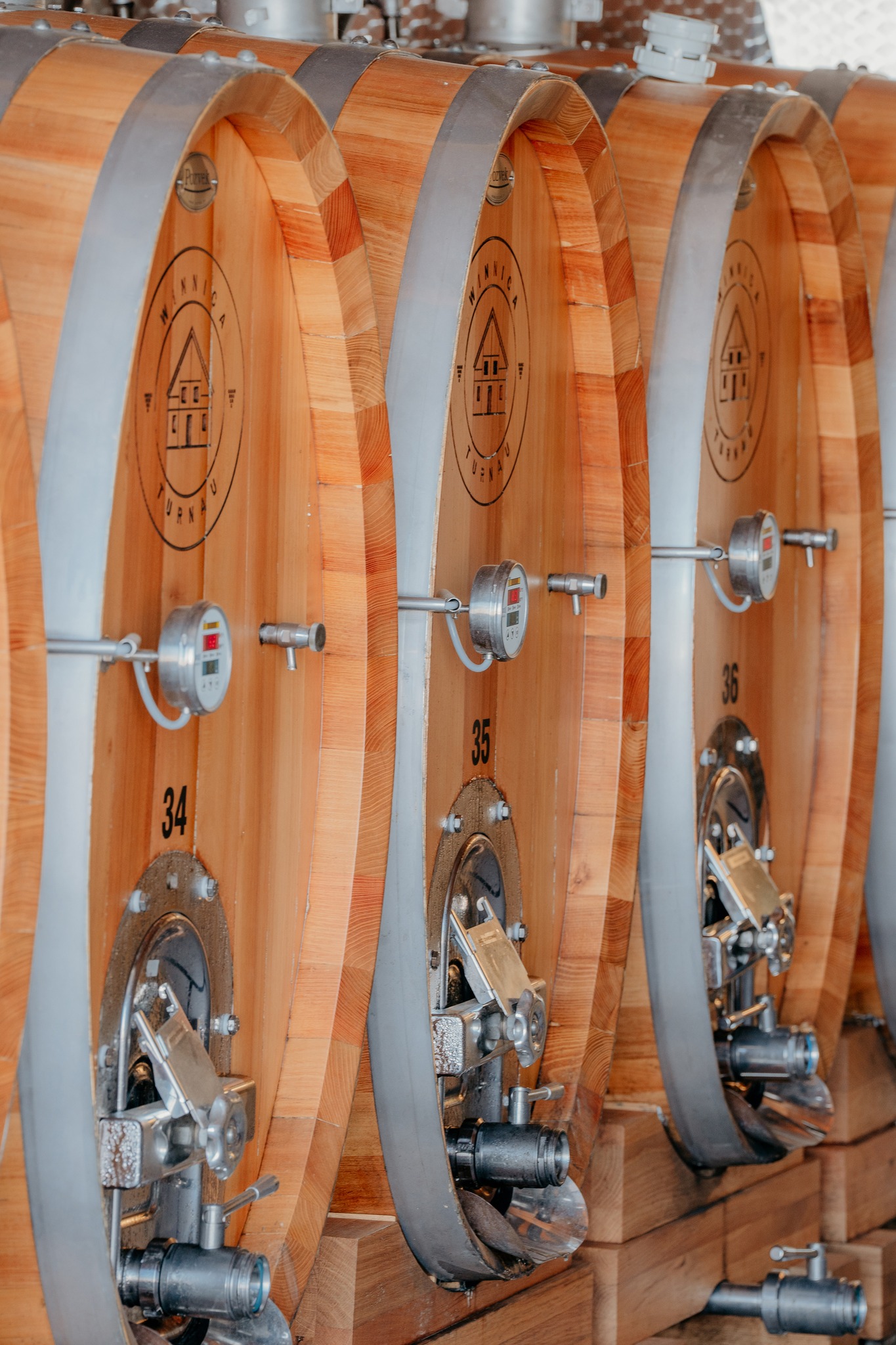 Wino spędziło już kilkanaście miesięcy w beczkach akacjowych i dębowych, a teraz czeka w kadziach na zabutelkowanie i premierę.