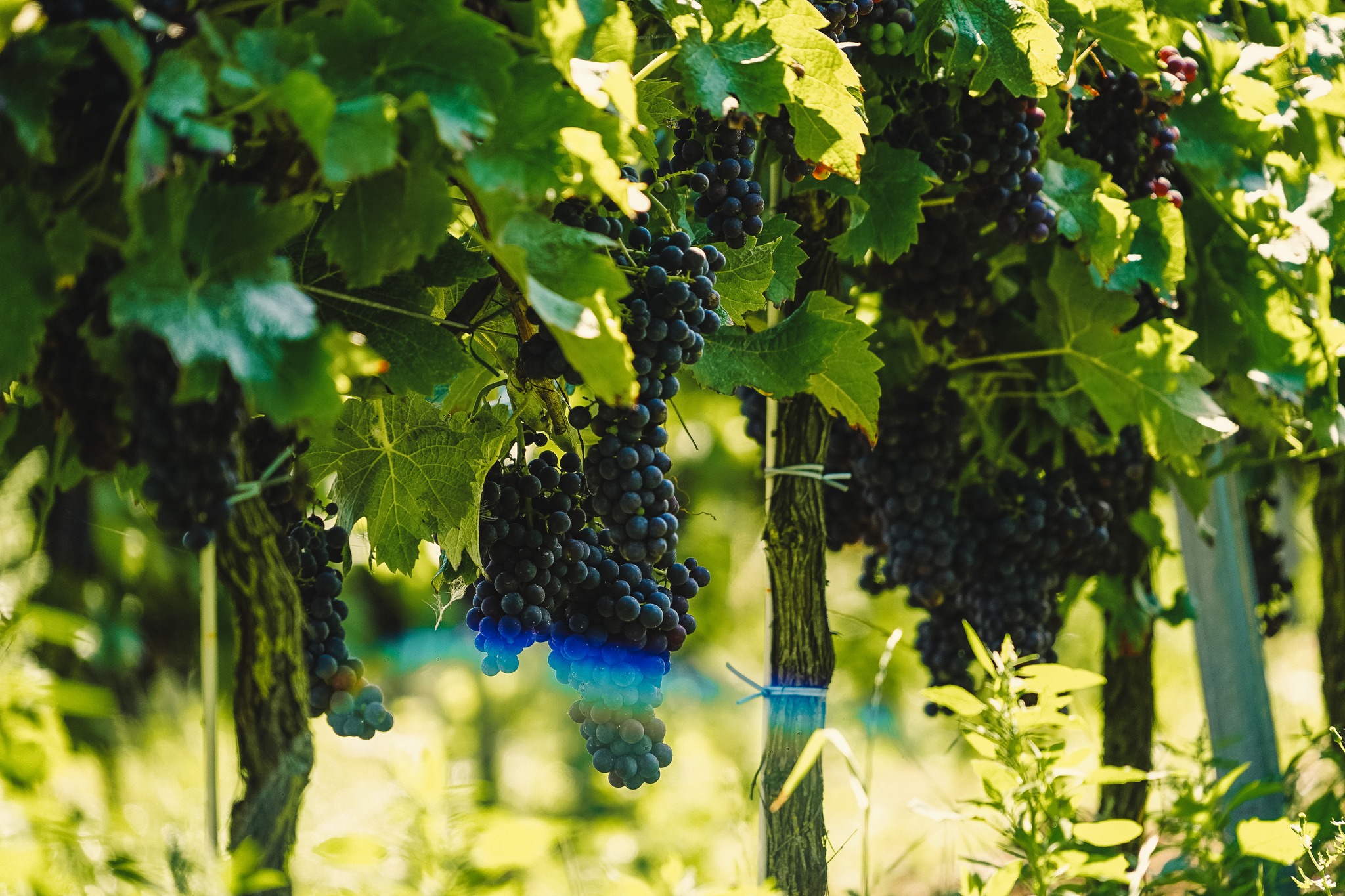Grona johannitera i cabernet cortis grzeją się w sierpniowym słońcu...