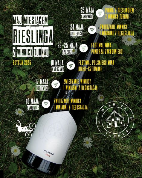 Czas na tegoroczną edycję akcji „Maj miesiącem Rieslinga z Winnicą Turnau”! Sprawdźcie 6-etapowy rozkład jazdy. Startujemy w Baniewicach, odwiedzamy Warszawę i Szczecin i tradycyjnie finiszujemy piknikiem z Rieslingiem.