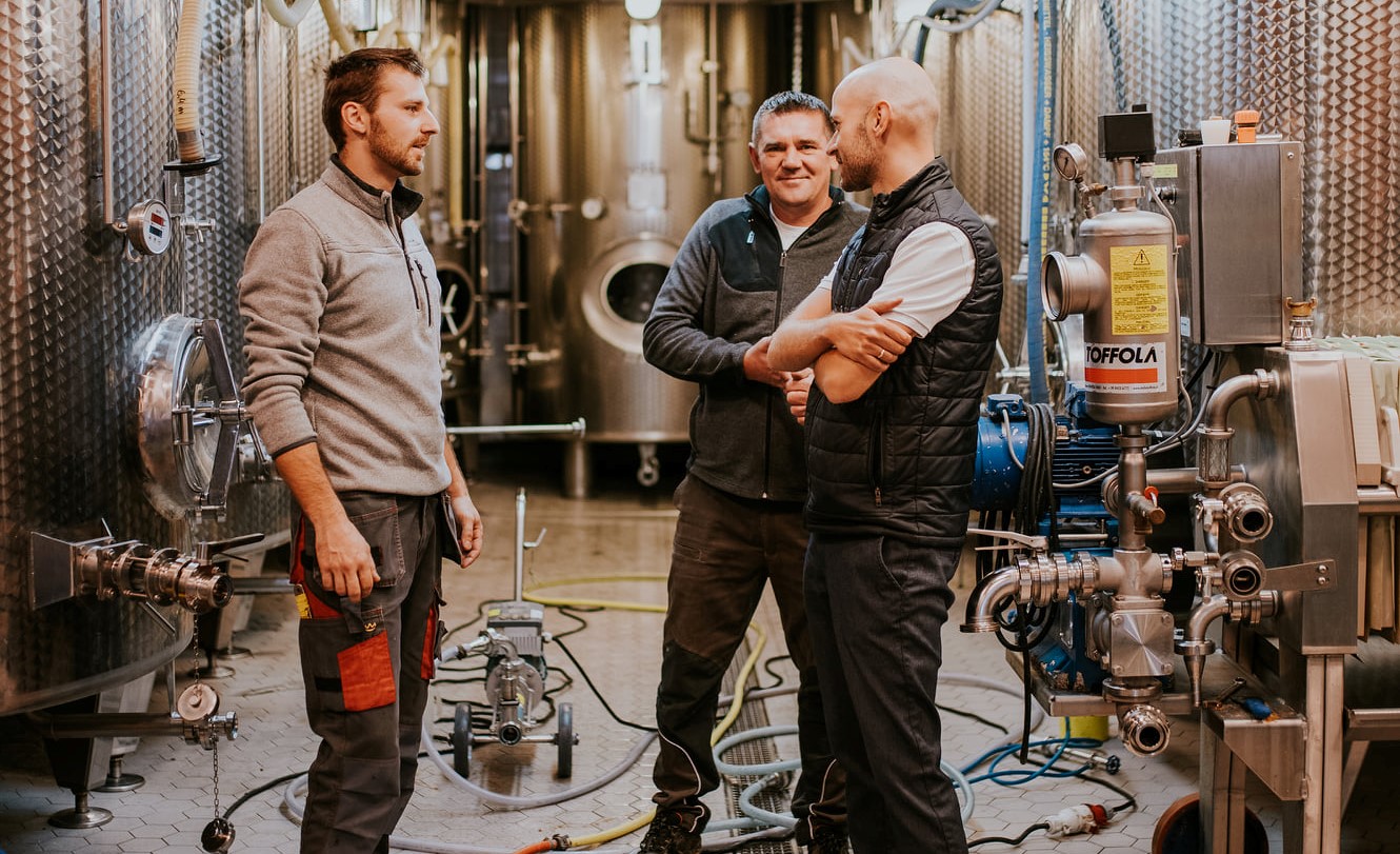 Wina czerwone przechodzą właśnie fermentację malolaktyczną, która je zaokrągli, redukując nieco kwasowość. Część win z rocznika 2021 zlewamy znad osadu drożdżowego, a niektóre już wkrótce powędrują do beczek. Zwolnić im miejsce muszą poprzednie roczniki, które szykują się do butelkowania.