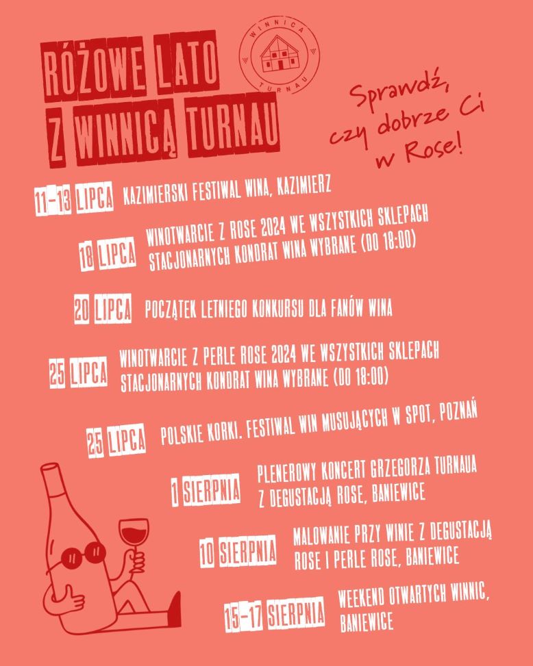 Przedstawiamy rozkład jazdy akcji Różowe lato z Winnicą Turnau. Będzie się działo w Baniewicach i wielu innych miejscach w Polsce. Pierwszy przystanek – już jutro w Kazimierzu. Bądźcie z nami, bądźcie z Rose!
