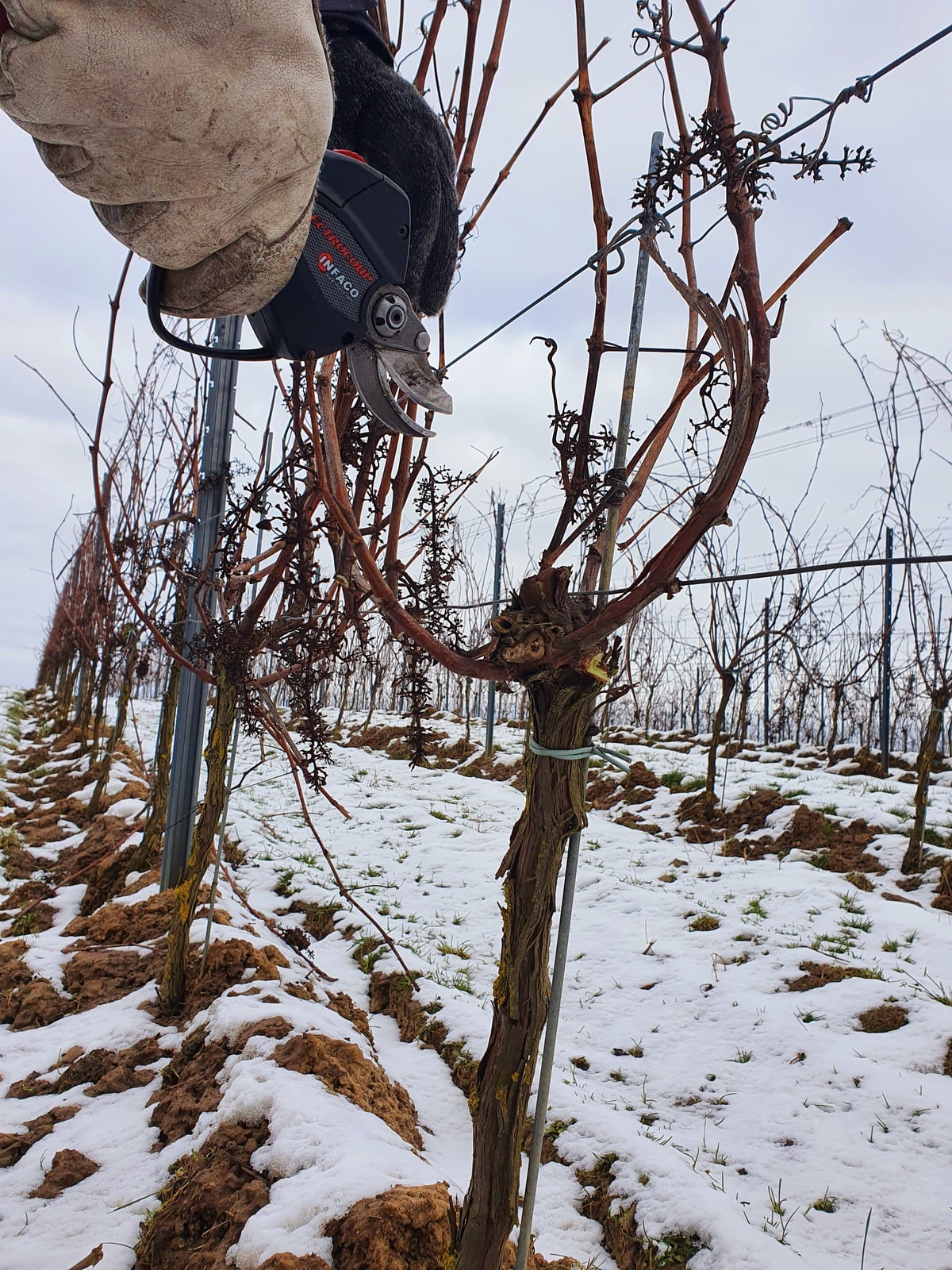 W naszej winnicy trwają zimowe cięcia, które mają zabezpieczyć krzewy przed zbytnim zagęszczeniem, a w konsekwencji zwiększyć jakość gron.