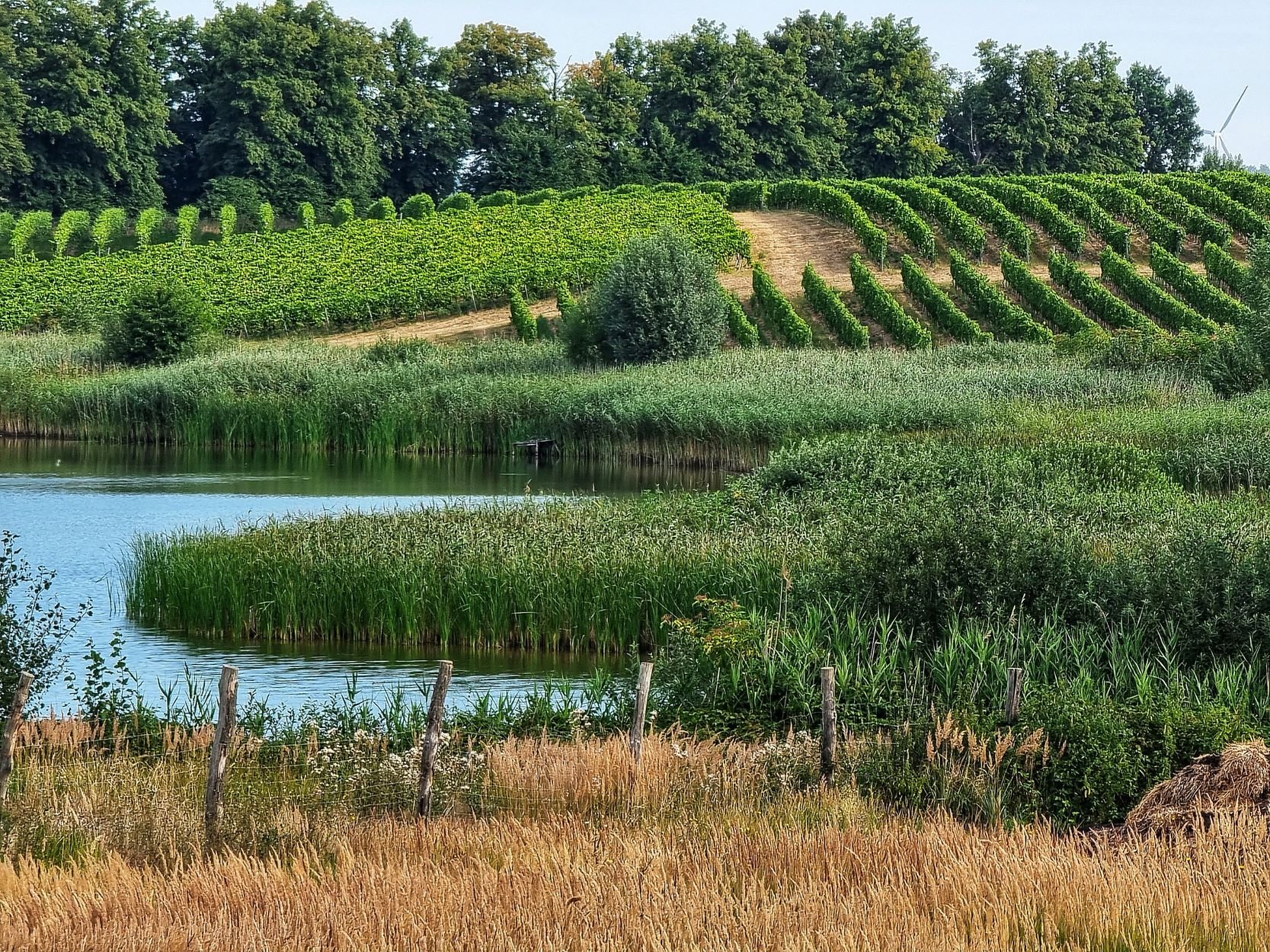To także czas intensywnych prac na ostatniej prostej przed zbiorami. Trwa koszenie międzyrzędzi, regulacja drutów i przycinanie latorośli. – To ostatnie hamuje trochę wzrost pędów i roślina dostaje sygnał, żeby od teraz skupić się już tylko na gronach – mówi Katarzyna Kasicka. – To też czas pierwszych prób cukru i kwasowości i przygotowań do zielonych zbiorów, czyli selekcji owoców po fazie wybarwiania.