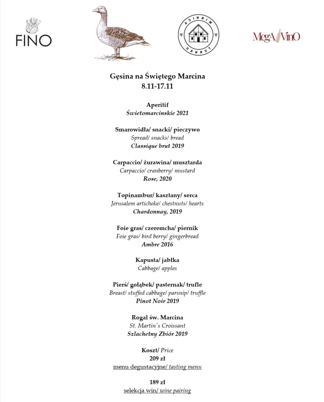 Gdańska restauracja Fino przygotowała specjalne świętomarcińskie menu, któremu towarzyszy aż 7 naszych win. Warto się pospieszyć – będzie go można spróbować tylko do 17 listopada.
