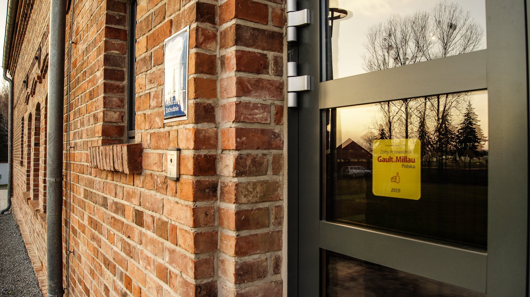 Plakietka wskazująca na rekomendację przewodnika już wita gości na drzwiach wejściowych naszej winnicy.