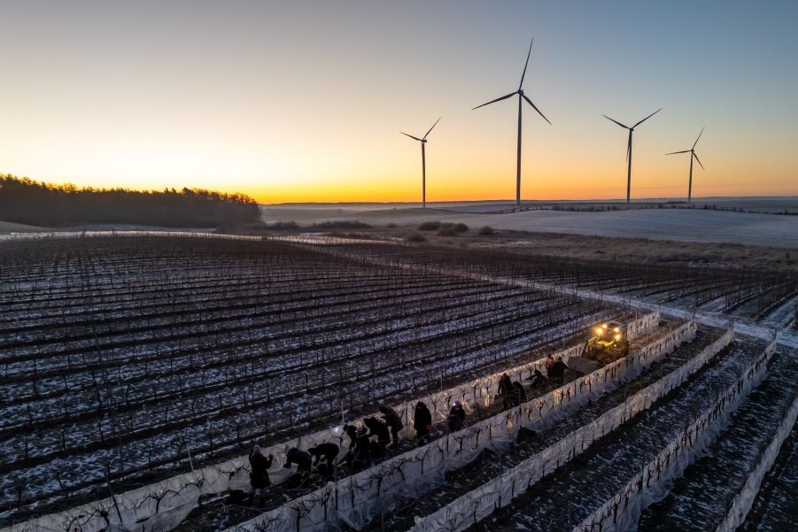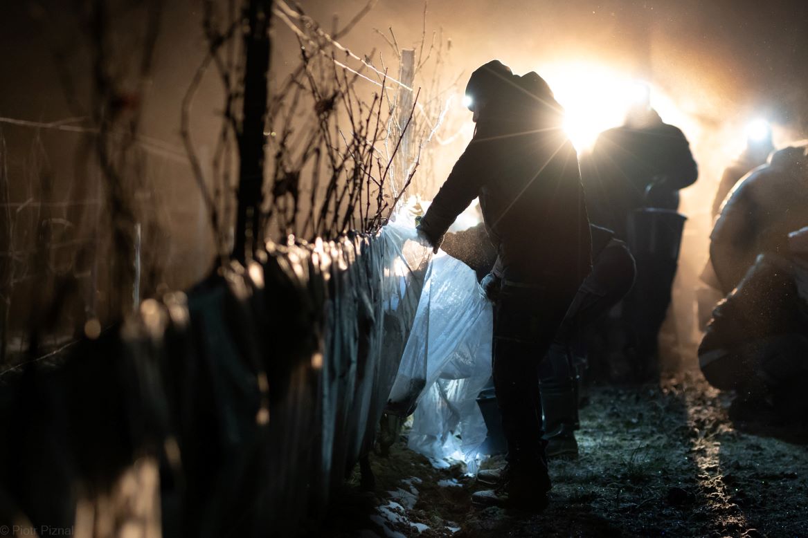 Wczoraj o 4:00 nad ranem w Baniewicach temperatura spadła do -10 stopni. To oznaczało jedno: rozpoczynamy przygotowania do zbiorów. Te zaczęły się godzinę później, a po nich nastąpiło wyciskanie moszczu na placu przed naszą winiarnią.