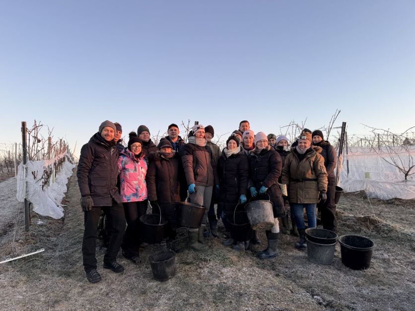 Jesteśmy bardzo szczęśliwi, także dlatego, że pierwszy raz w historii naszej winnicy zebraliśmy zamarznięte grona czerwonej odmiany – cabernet cortis. Łącznie przypadły na ten szczep 1224 kg zebranych owoców, na johannitera zaś – 728 kg.